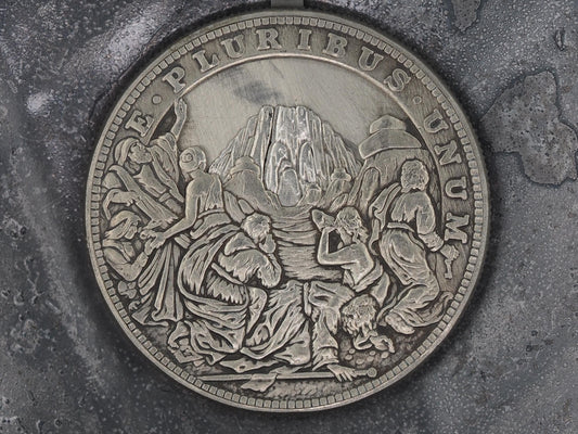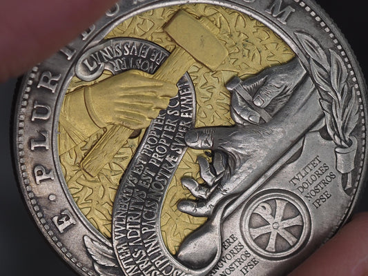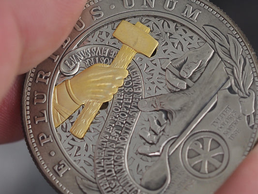 Christs Crucifixion Mechanical Morgan Dollar Replica (Gold Hammer)