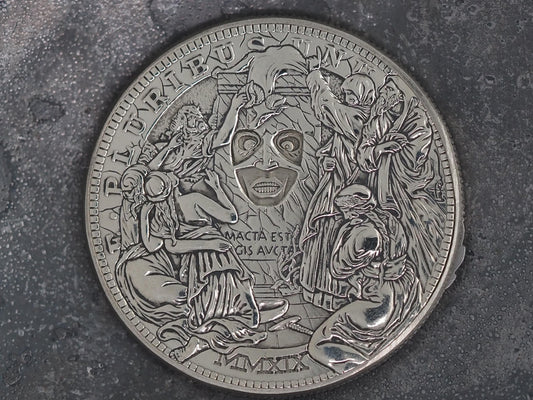 Trifaccia Faces Of Comedy, Tragedy & Rage Mechanical Morgan Dollar Replica